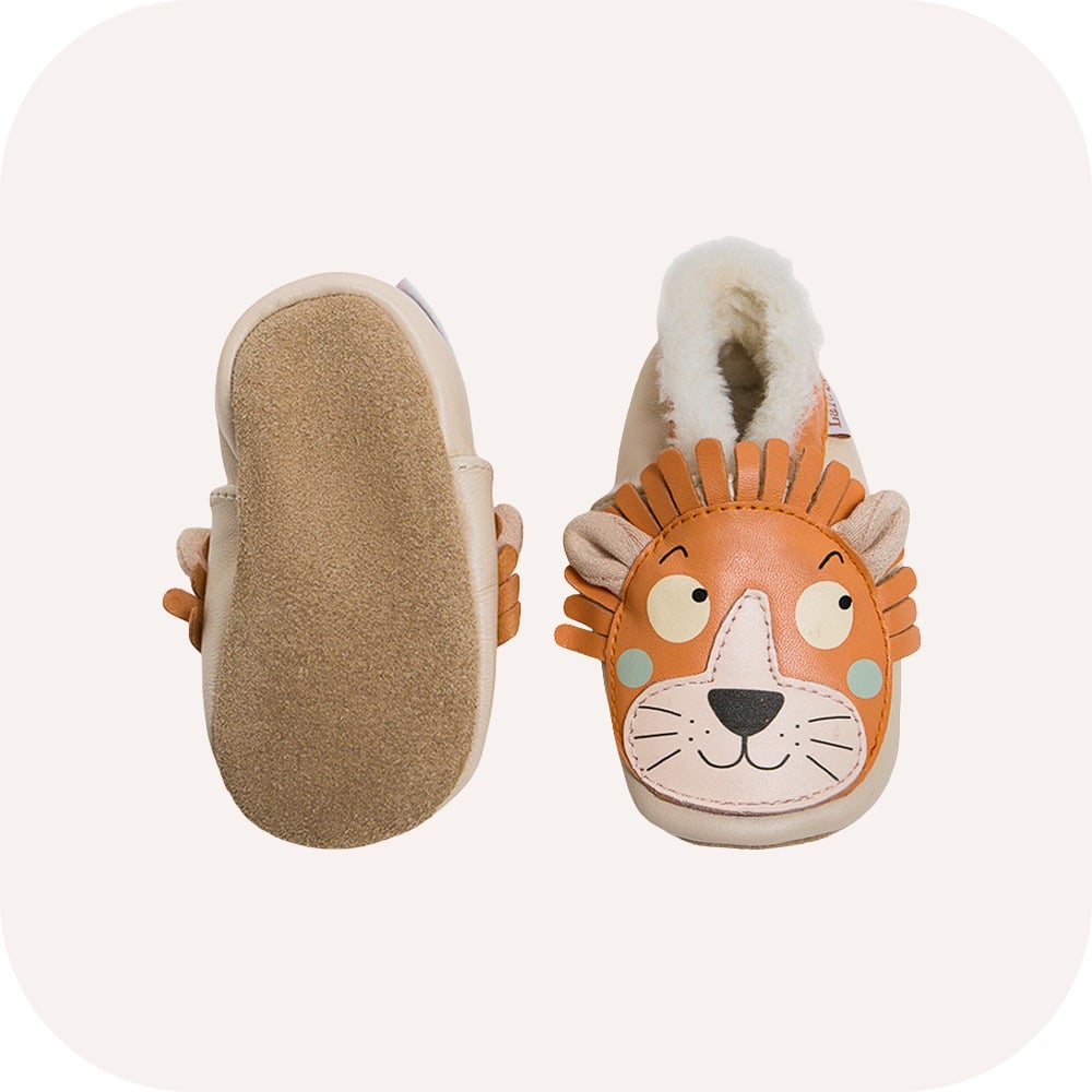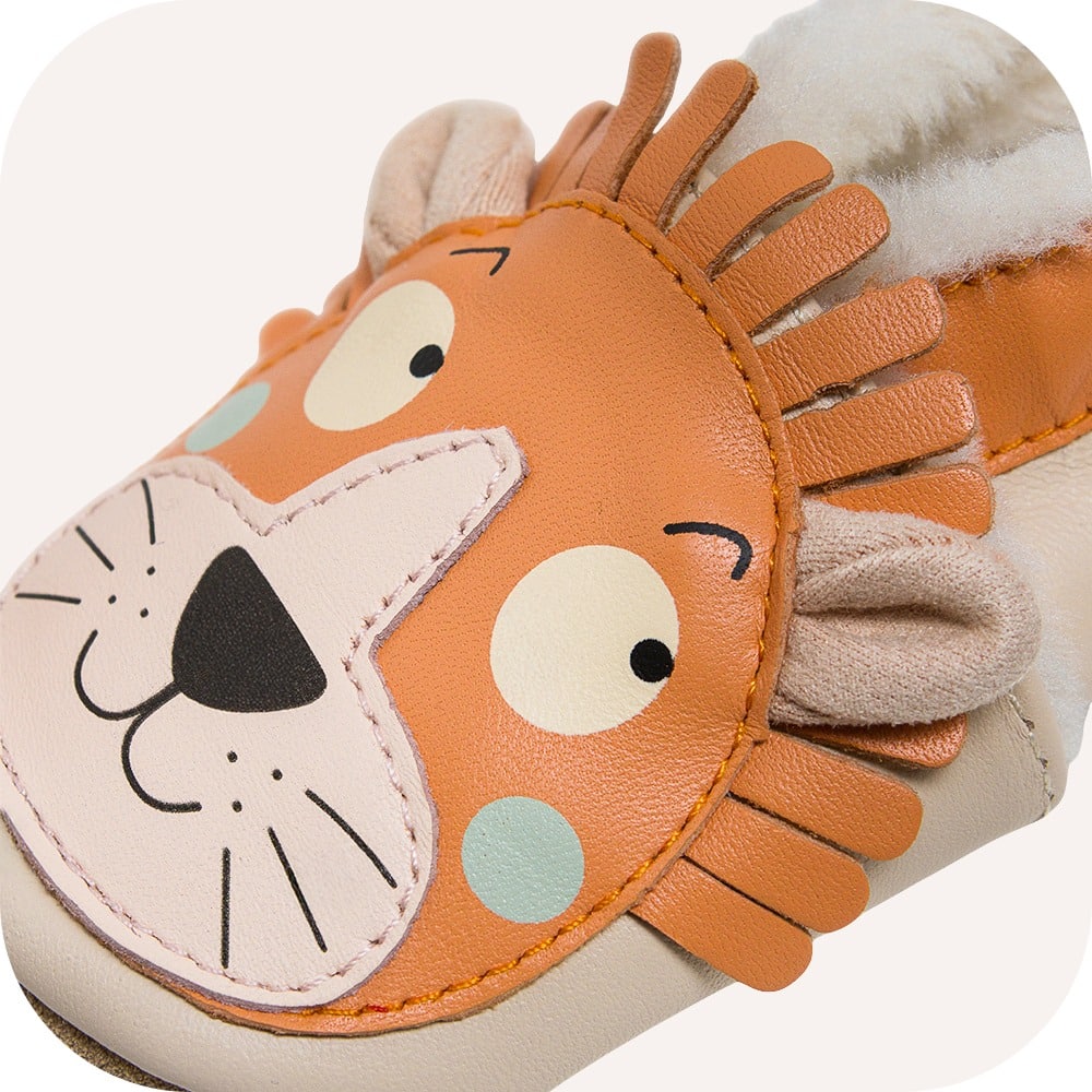 L’intérieur des chaussons est doublé d’une fourrure toute douce, qui garde les petits pieds bien au chaud et assure un confort optimal, idéal pour les saisons plus fraîches.